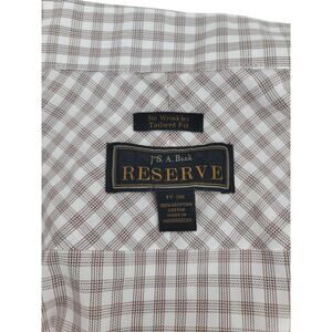 JOS A. BANK Reserve Men’s Dress Shirt - Tailored Fit, No Iron, Brown Plaid, 100% Egyptian Cotton, Size 17 35