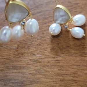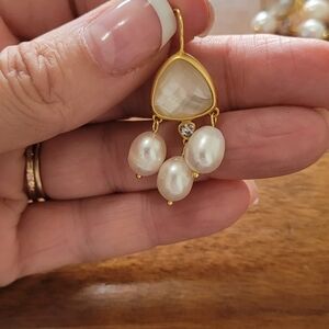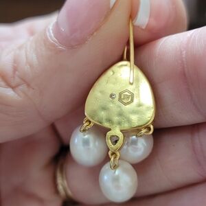 NWOT JULIE VOS Gold and Pearl Drop Earrings