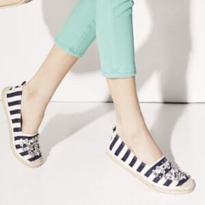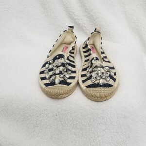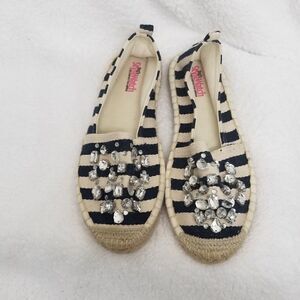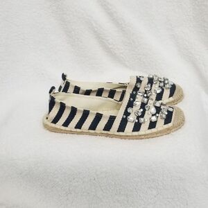 NWOT JUSTFAB Blue and White Espadrilles W/ Rhinestones Sz 10