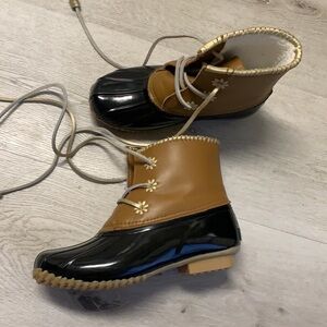 NWOT Jack Rogers Chloe duck boots winter rain boots two tones camel black