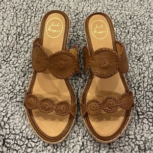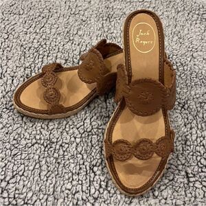NWOT Jack Rogers Shelby Espadrille Tan Leather Wedge Slide Sandals