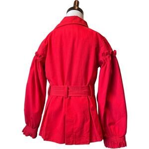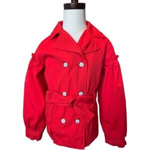 NWOT Janie & Jack Girl's Red Belted Trench Coat Ruffles Balloon Sleeves Sz 5-6