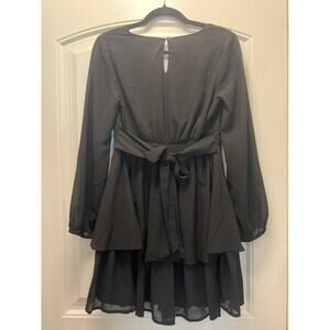 NWOT Japna Women’s V-Neck Long Sleeve Tie-Waist Tiered Ruffle Dress Size M Black