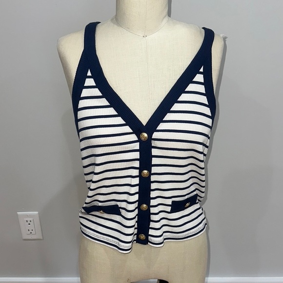 NWOT J.crew Striped Navy and White Button-Up Tank Top