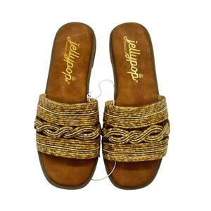 NWOT Jellypop Pucci Slide Sandals Woven Straw Upper Strap Slip On Casual 6M