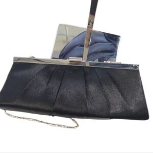 NWOT Jessica McClintock Black & Silver Clutch With Silver Chain Strap