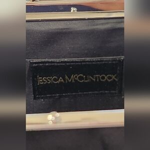 NWOT Jessica McClintock Black & Silver Clutch With Silver Chain Strap.