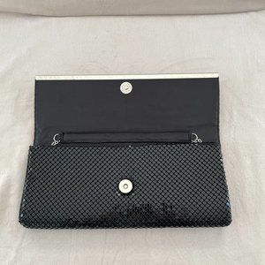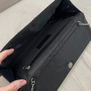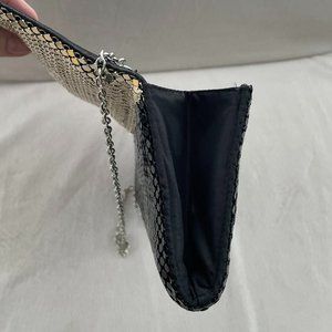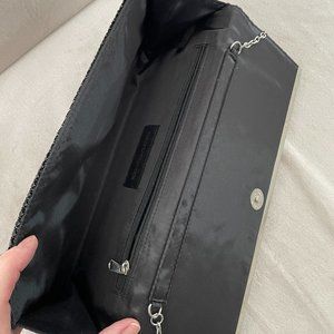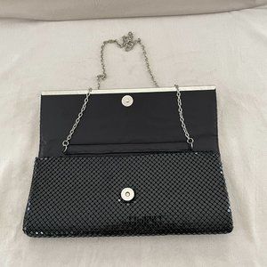 NWOT! Jessica McClintock Silver & Black Metal Mesh Evening Bag with Chain