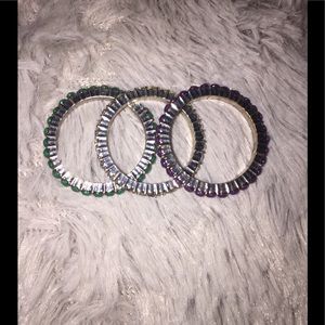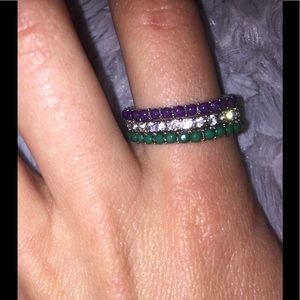 Set of 3 super cute rings! Teal, purple, and silver jewels with silver metal! Don't have the exact ring size but it's close to 2 cm across! These have never been worn, unfortunately they are too big for me so I hope someone will be able to wear them!💍