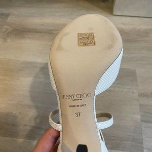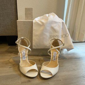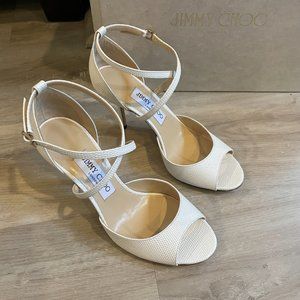 NWOT Jimmy Choo Emsy Peep-Toe Embossed Leather Sandals