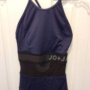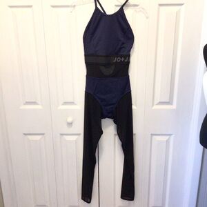 Jo + Jax Blue/Black Fame Colorblock Sleeveless One Piece Dance Unitard Size MA. New without tags. Never. Tag was lost. From smoke free home. *model photos may appear slightly different in color due to lighting.