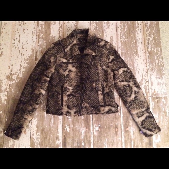NWOT and never worn beautiful designer jacket by Joe's Jeans in a cool leopard print. Shorter length hits at the waist or slightly above. Zipper detailing on sleeves amd chest. This jacket is awesome but is a little bit too small on me in the shoulders. Hopefully it will be perfect on you!