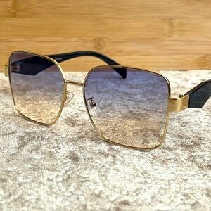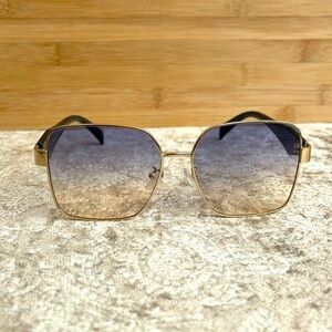 NWOT John Varvatos Square Frame Gold Tone Rim Sunglasses Blue Gradient Lens