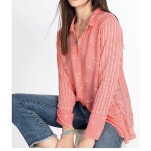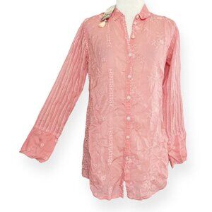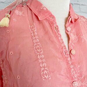 NWOT Johnny Was Nyx Embroidered Button Up Top Women's S Coral Sunset C18322-1