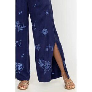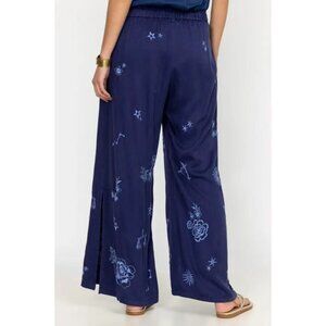 NWOT Johnny Was Wide Leg Embroidered Floral Pants Size XL Blue Elastic waist