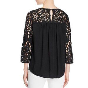 NWOT Joie Lindy Top Crochet Lace 3/4 Sleeve Relax Black Sz XS