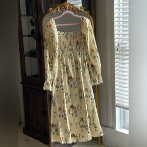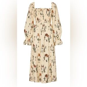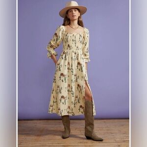 NWOT Jolene Joshua Tree Butter Yellow Print Shirred Western Print Dress