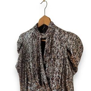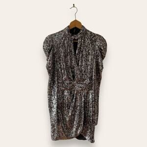NWOT Jonathan Simkhai Mallory Sequin Mini Halter Dress Multi Silver Gold 4 Women