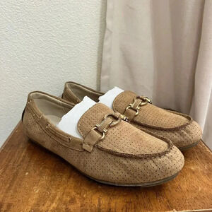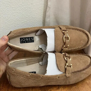 NWOT Jones New York Sunnyside Suede 8.5 Ballet Flat Moccasin Slip On Gold Buckle