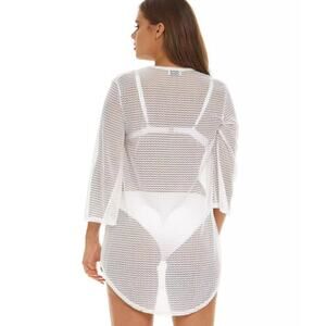 Lightweight and breathable, this Jordan Taylor swim cover-up tunic features sheer mesh construction and dramatic 3/4-length bell sleeves. The relaxed silhouette and V-neckline make it an effortless layer over your favorite swimwear. Made in the USA from soft, stretchy fabric.