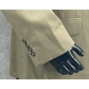 Measurements (approximate, laid flat): Two button in front, four button sleeve, single vented.