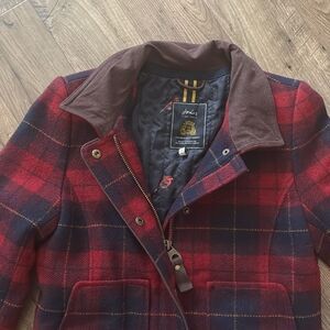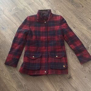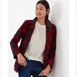 NWOT Joules Women's Red Plaid Fieldcoat Wool Blend Jacket Size 6