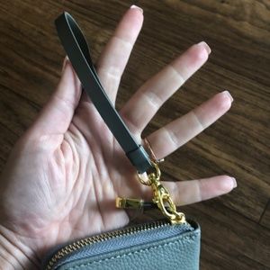 NWOT Gray Joy & Iman Wallet with wristlet Strap. Zipper closure with pocket on both sides and credit card storage on one side.