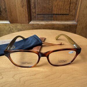 New Without Tags, unused; Joy Mangano - JM New York; Front: Tortoiseshell Framed; Arms Exterior: Dark Brown; Arms Interior: Gold; +1.50 Reading Glasses; Spring Temple; Black Cloth Logo Bag; Lenses: Top to Bottom 1.75"; Across 2"