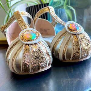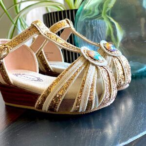 NWOT JoyFolie Gold Hazel Sandal Gold Glitter Stone Wedge 5 Bling Hazel in Gold