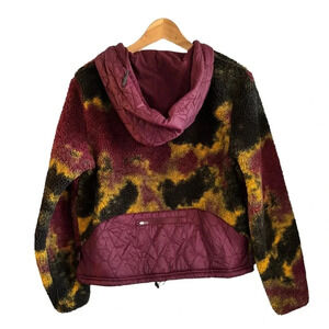 NWOT Joy Lab Maroon Yellow Black Tie Dye Hooded Zip Up Fleece Size Small