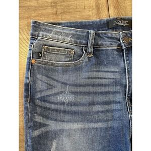 NWOT Judy Blue Relaxed Fit Mid-Rise Dark Blue Denim Jeans Distressed Size 32