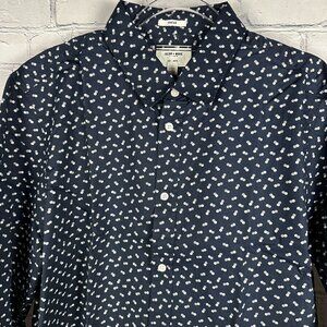 NWOT Julian & Mark Mens Ryan Geo Dot Print Slim Fit Long Sleeve Dress Shirt Navy