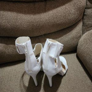 Get a mega strappy open toe, functional back zipper and jagged rubber platform sole that give it an added edge.
