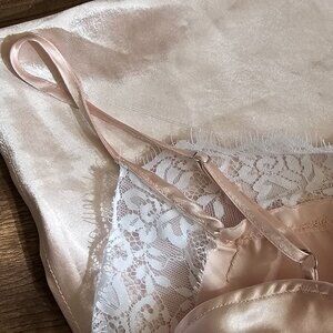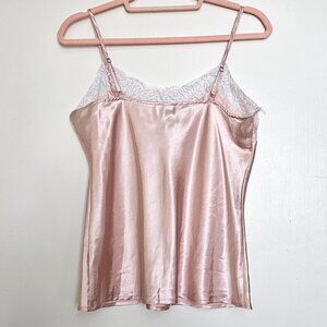 NWOT Just Sexy Lingerie Satin Tank Top Camisole with Lace, M, Light Pink