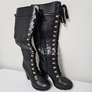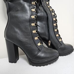 NWOT JustFab Eliza Heeled Boots Womens 8.5 Black Lace-Up Side Zipper Gothic Punk