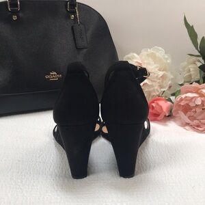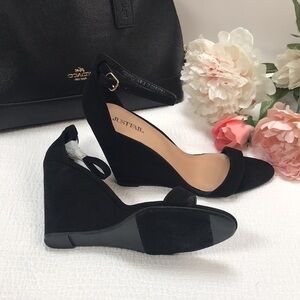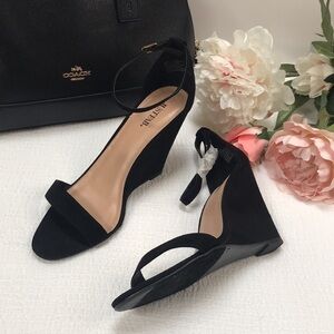 Tags: wedges ankle strap sandals black suede dressy office comfy workplace