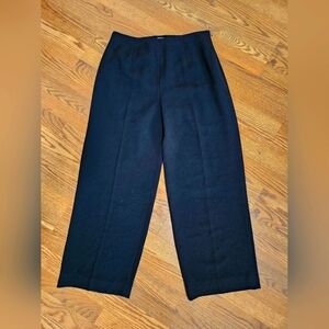 Elevate your wardrobe with these stylish and comfortable Kate Hill Petite Wide Leg Trousers. The black chiffon fabric creates a solid pattern and the high-rise waistline offers a flattering fit. The pants feature a side zip closure and a 29-inch inseam, making them perfect for any occasion.