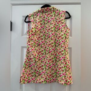 NWOT KATHERINE WAY sleeveless tank top collared pink green medium