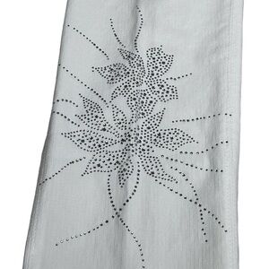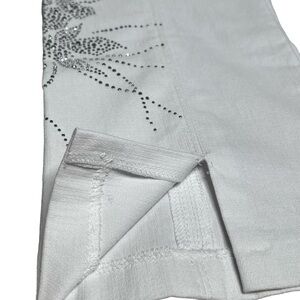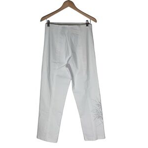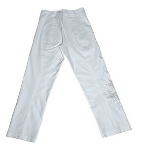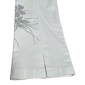 NWOT KAVELI Silver Floral Embellishments Front Slit White Ankle Pants Size 14