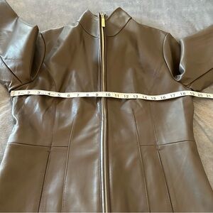 NWOT KENNETH COLE GRAY FAUX LEATHER STANDUP COLLAR ZIP JACKET.