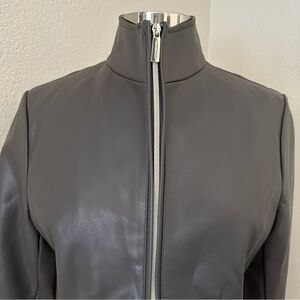 NWOT KENNETH COLE GRAY FAUX LEATHER STANDUP COLLAR ZIP JACKET Size M