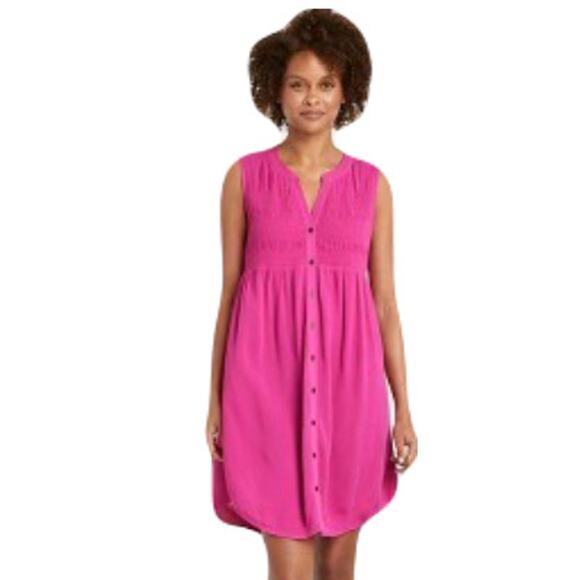 NWOT KNOX ROSE Dress XL Fuchsia-Pink Rush Curve-Hem Button-Up Sleeveless Knee