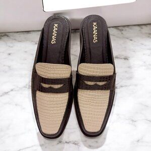 NWOT Kaanas Brezo Color Block Square Toe Leather Mule Black