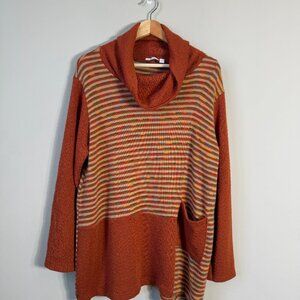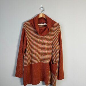 NWOT Kaktus Striped Sweater Pullover Tunic Women's Large Orange Made in Italy