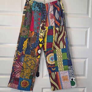 These Kantha style pants feature a unique distribution of colorful pattern! You can tell from the stitching and heavier weight of the pants that these are quality.