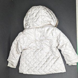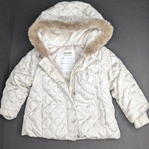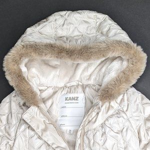NWOT Kanz Quilted Infant Hooded Cream Colored Coat (6m); Faux Fur Lining and Hood; Quilted Design; Ribbed Wrists; Zipper and Snap Closure; 2-Front Slit Pockets; Beautiful Winter Coat; 100% Polyester