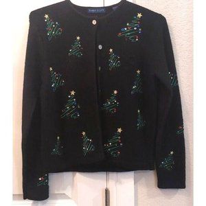 NWOT Karen Scott Women Black Christmas Design Boiled Wool Cardigan Blazer SZ PS