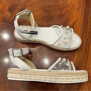 NWOT Karl Lagerfeld White Adalina-Studs Pearl Espadille Sandals size 7.5