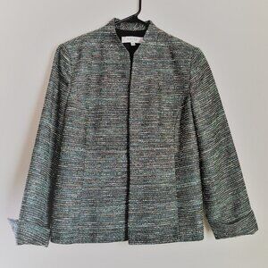 NWOT Kasper Women’s Jacket Woven Green Brown Beige Silver Metallic Size 12