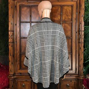 NWOT Kasper Wool Blend Tipped Houndstooth Plaid Mandarin Collar Cape